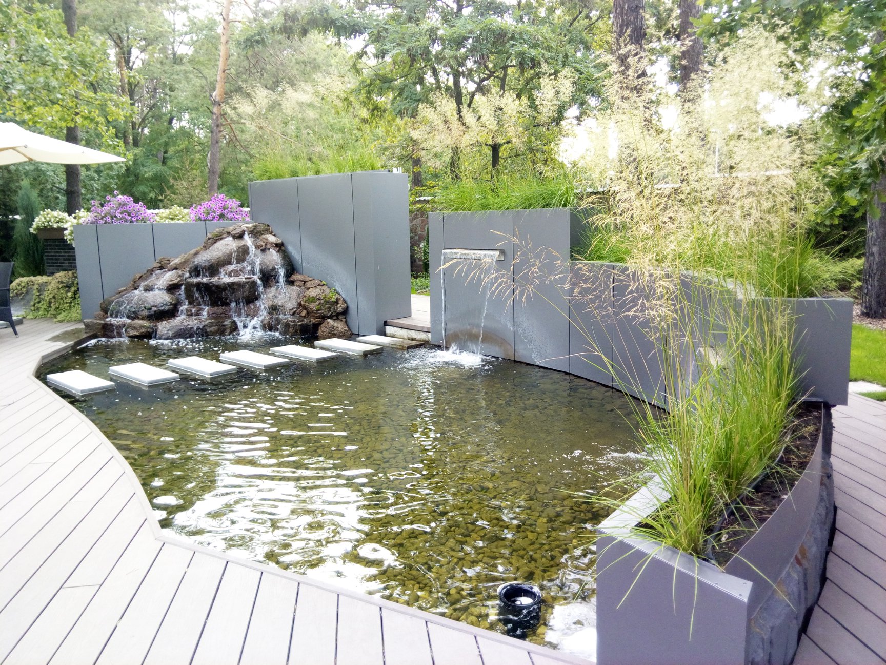 МС Ландшафт занимается устройством водяных участков. Мы осуществляем полный комплекс мероприятий, касающихся этого направления деятельности. Проектирование, подбор необходимых материалов и систем, создание бассейнов и водовместилищ, оснащение водой и другими услугами для оформления идеального декора для дачи, частного дома или любой области вокруг водной поверхности. Наше агентство предоставляет сервисы обустройства по выгодной стоимости, на которую влияет география локации, стройматериалы, тип строительных мероприятий и их объем.